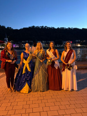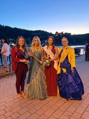 Katharina bedankte sich als Häusener Mädchen für die vergangenen 3 Jahre ihrer Amtszeit für die zahlreichen Auftritte, die sie für St. Goarshausen machen durfte. Es war ihr letzter, offizieller Auftritt, den sie für St. Goarshausen gemacht hat. Die Stadt St. Goarshausen ließ es sich nicht nehmen, der Loreley Katharina zu danken. Ihr wurde ein wunderschöner Blumenstrauß überreicht, eine Dankesurkunde der Stadt, sowie die „Tränen der Loreley“ zum Abschied.